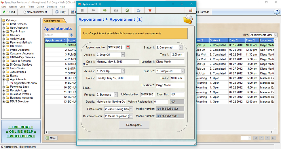 A mobile app example of scheduling an appointment specifying what is going to be done now