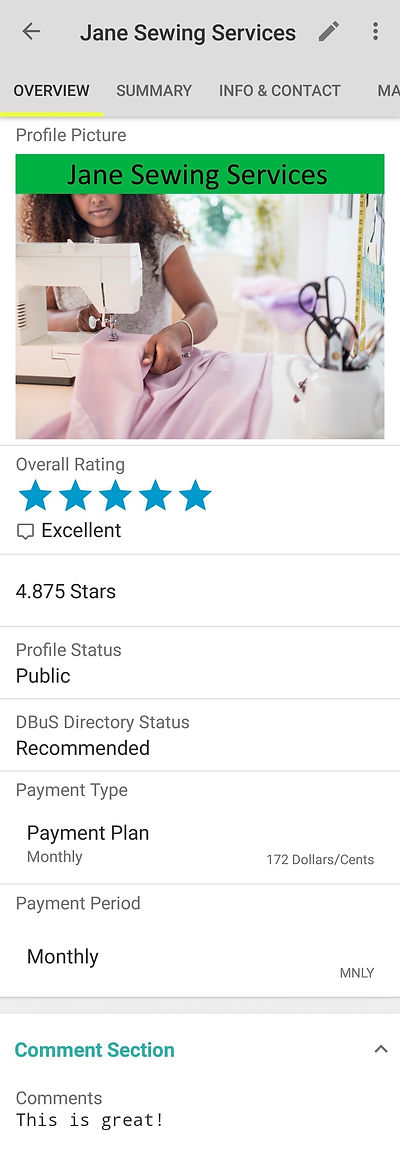 A mobile app example of a rating system in your business profile where people can rate you as a person or your business based on their satisfaction of your offering(s)